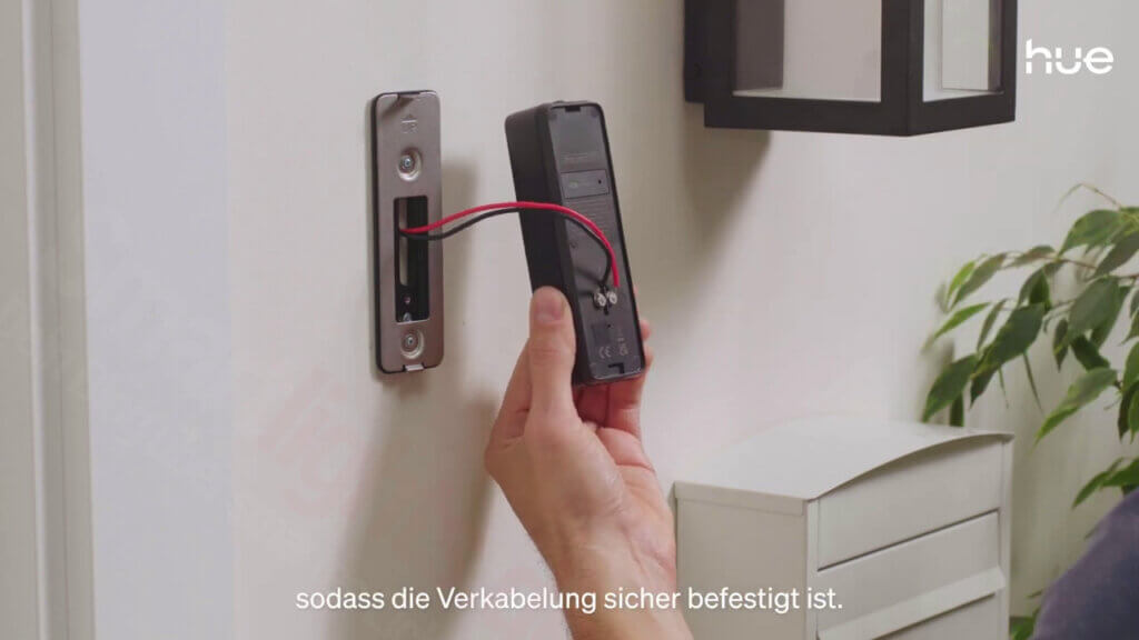 Die Hue Secure Türklingel ersetzt eure bisherige Klingel und wird an 12–24 Volt Wechselspannung angeschlossen. Dies ist auch gleichzeitig die größte Herausforderung, denn oftmals laufen die vorinstallierte Leitung auf 230 Volt. Sie darf auf keinen Fall direkt dort angeschlossen werden, sondern braucht einen passenden Klingeltrafo.