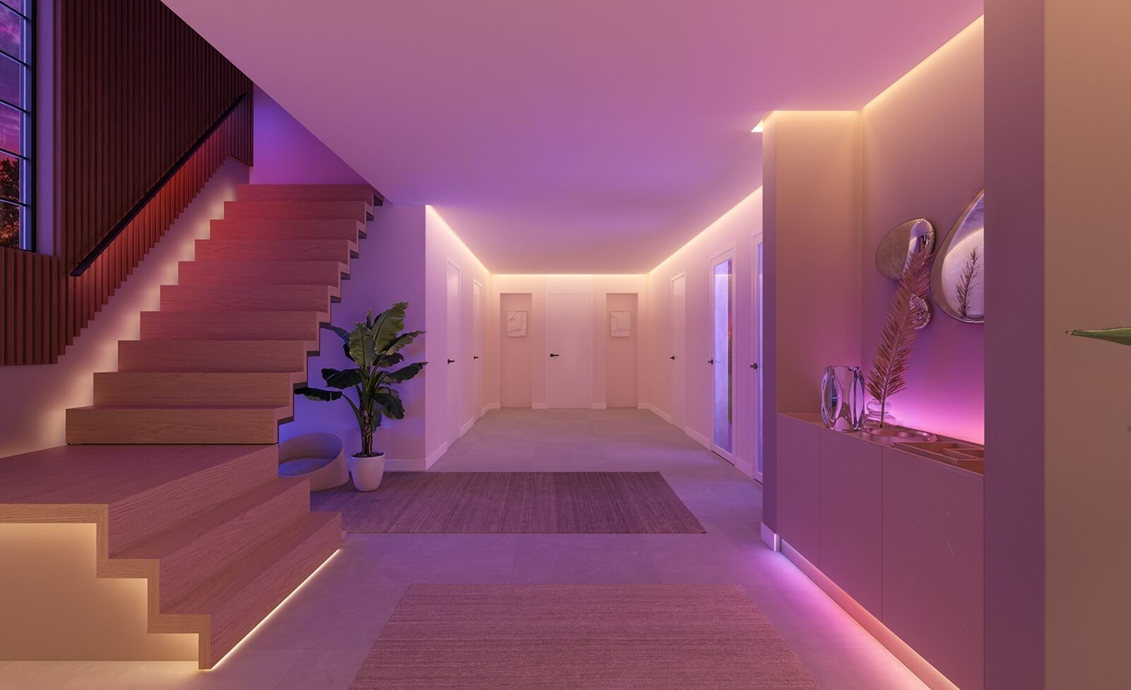 Die Lightstrips sind mit der Gradient-Technologie ausgestattet, sodass ihr verschiedene Farben und Effekte auf der gesamten Länge wiedergeben könnt. Zudem lässt er sich kürzen und verlängern und kann somit an fast jeder beliebigen Stelle installiert werden.