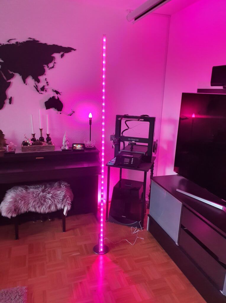 Mit diesen drei Sachen, lässt sich am Ende dann eine eigene „Hue Signe“ Stehlampe nachbauen, die dank original Philips Hue Lightstrip, natürlich mit der Philips Hue App funktioniert. Die Druckdatei hat Jörg für die Community bereitgestellt, was ich wirklich sehr gut finde. Hier könnt ihr die Datei herunterladen.