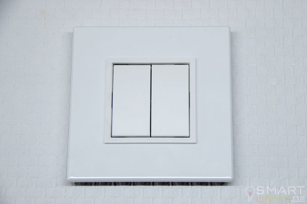 Der Schalter macht einen qualitativ sehr hochwertigen Eindruck und kann dank der Trägerplatte an jeder beliebigen Wand montiert werden. Ihr könnt somit auch Räume mit Schaltern ausstatten, an denen bisher gar keine vorgesehen waren. Dazu lassen sich viele verschiedene Materialien und Farben wählen, was eine deutlich größer Auswahl bedeutet.