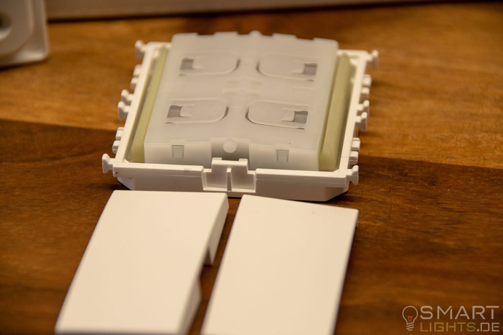 Alle Teile sind ordnungsgemäß verarbeitet und weisen eine sehr gute Qualität auf. Das Zusammensetzen der einzelnen Elemente war auch ohne Anleitung möglich und hat nicht länger als 2 Minuten gedauert. Die zwei Wippen geben auf jeder Seite ein gutes Feedback zurück und die Befehle werden schnell von der Bridge verarbeitet und umgesetzt. Bedenken sollte man nur, dass man beim Drücken etwas mehr Kraft aufbringen muss, was der Tatsache geschuldet ist, dass der benötigte Strom erst durch drücken der Taste erzeugt wird. Dies kennt man zum Beispiel vom bekannten Philips Hue Tap.