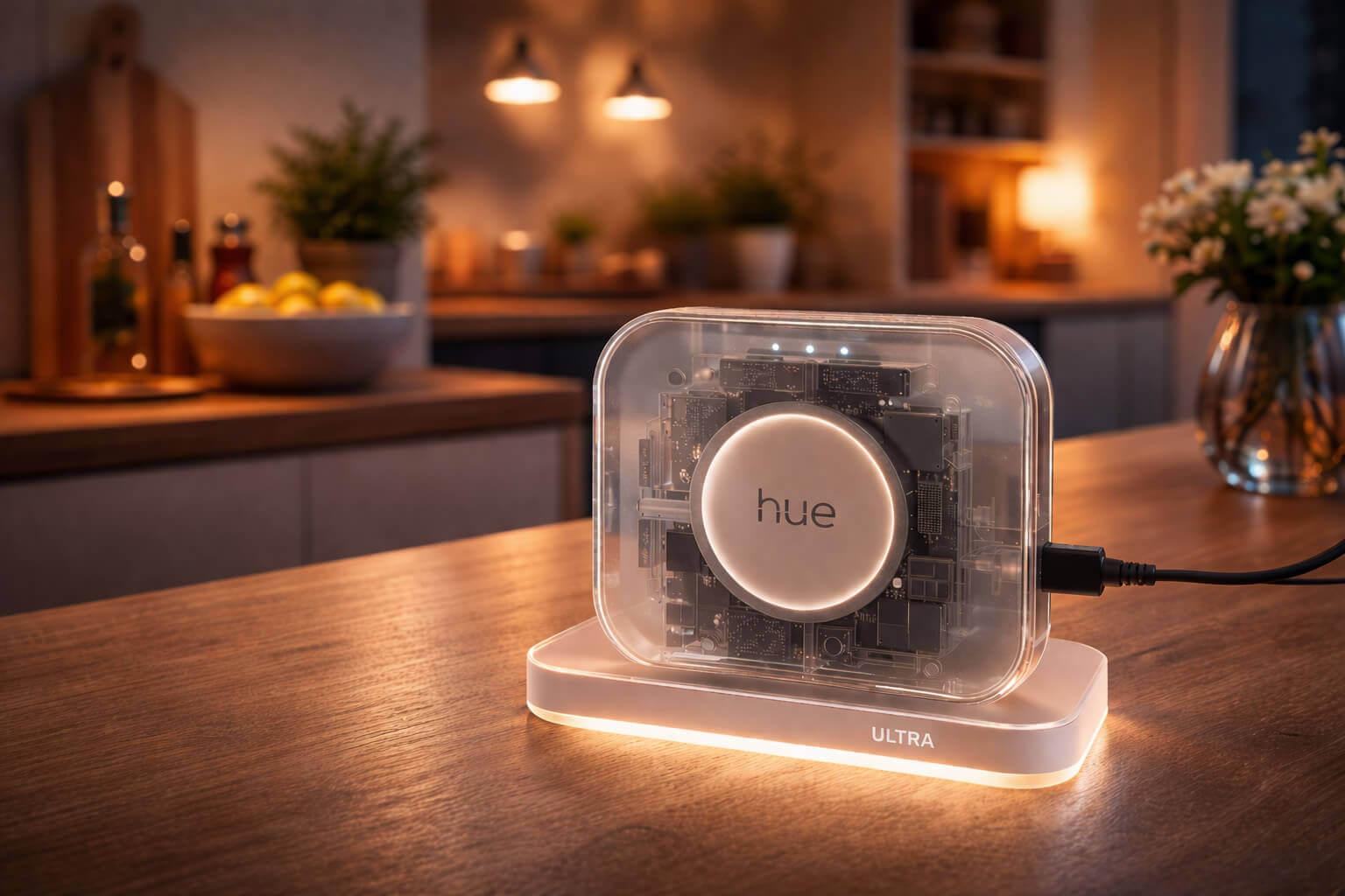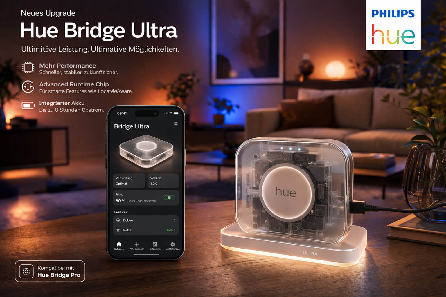 Die Hue Bridge Pro wurde gerade mal vor knapp 7 Monaten vorgestellt und nun bahnt sich schon ein Nachfolger an. Auf der deutschen Philips Hue Seite bin ich eher durch Zufall auf die neue Hue Bridge Ultra gestoßen, die nicht nur deutlich leistungsfähiger ist, sondern auch weitere Features mit sich bringt.