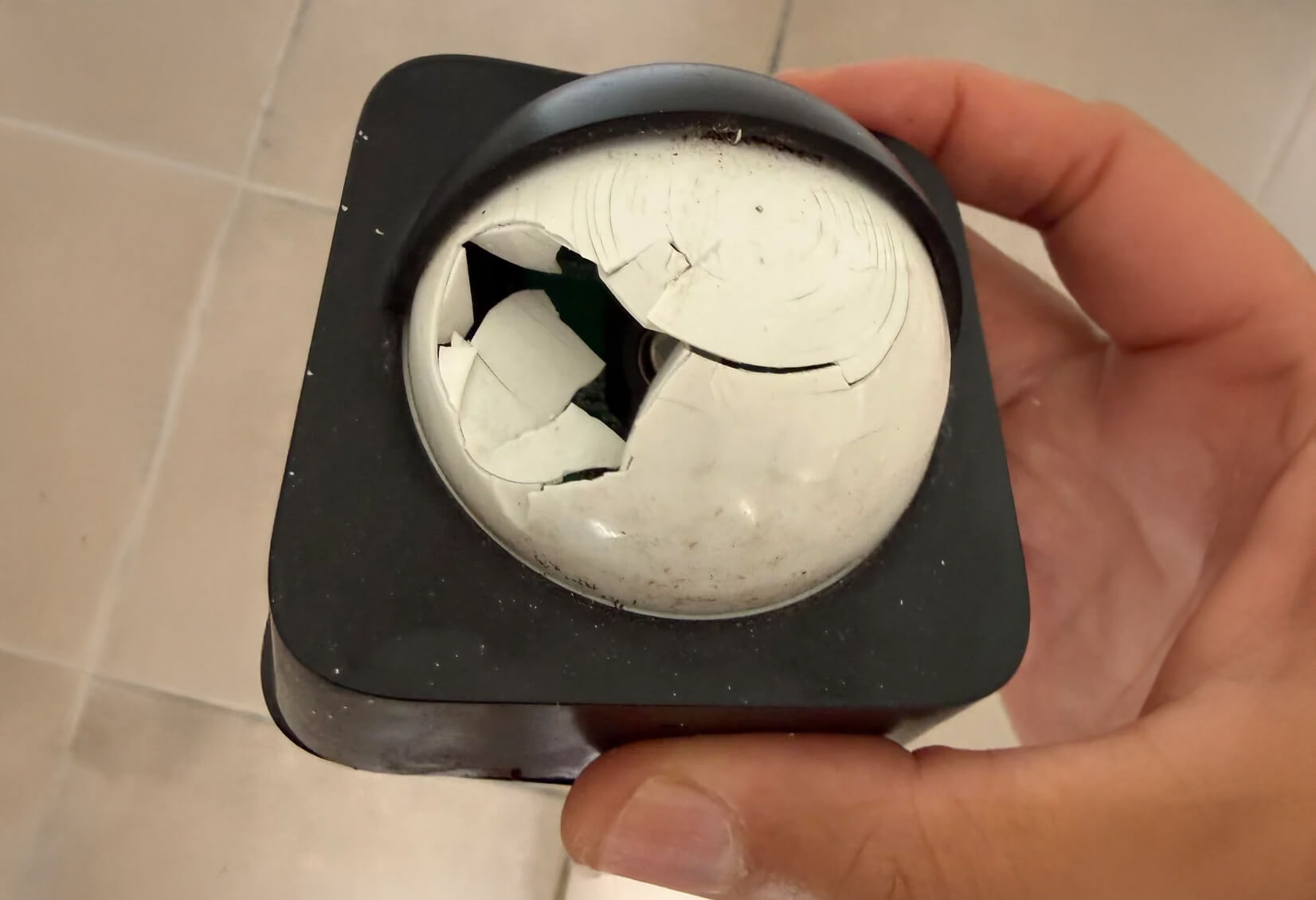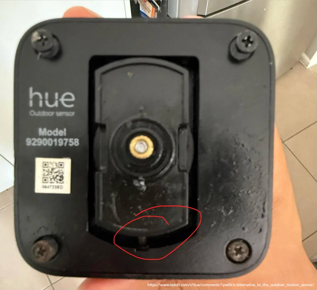 Nun zurück aber zum Nutzer auf Reddit, denn sein Bewegungssensor hat direkt zwei Probleme gehabt. Zum einen sind die Schrauben auf der Rückseite korrodiert und zum anderen ist die weiße Kunststoffschutzabdeckung auf der Vorderseite gebrochen. Dies war aber nur ein Ergebnis aus dem Ablegen auf dem Tisch, denn der Kunststoff ist über die Jahre aufgrund von intensiver Sonneneinstrahlung einfach spröde geworden.