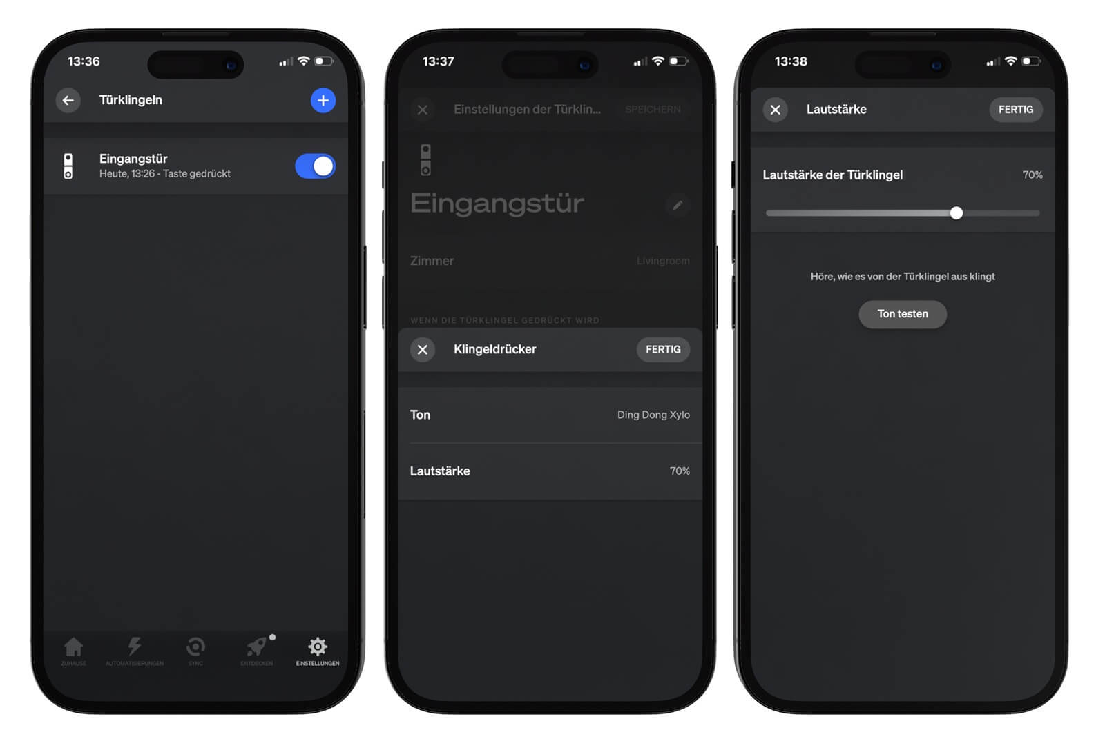 Soll der Ton komplett ausgeschaltet werden, damit überhaupt keine akustische Bestätigung des Drückens direkt an der Türklingel erfolgt, dann stellt die Lautstärke auf 0 Prozent. Leider hängt die Türklingel noch etwas dem Türgong hinterher, denn dort könnt ihr bis zu drei verschiedene Zeitslots einstellen.