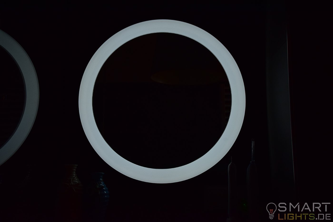 Die Philips Hue Adore hat einige Besonderheiten im Gegensatz zu den herkömmlichen Leuchtmitteln. Im Inneren befindet sich kein E27 oder E14 Leuchtmittel, sondern ein White Ambiance Lightstrip. Dieser ist fest verbaut und kann nicht ausgetauscht werden. Durch diese Wahl des Leuchtmittels sind bis zu 2.400 Lumen ohne eine große Wärmeentwicklung möglich. Bei dem Verbrauch gibt Philips bis zu 40 Watt an, was bei normaler Benutzung aber etwas weniger sein sollte. Bei einer Lebensdauer von 30.000 Stunden müsst ihr euch auch keine Gedanken um einen Austausch oder eine Reparatur machen. Falls es dennoch mal Probleme oder Fragen rund um die Spiegelleuchte gibt, dann könnt ihr natürlich auch immer den Philips Hue Support anschreiben oder uns fragen.[vc_single_image image=“12889″ img_size=“large“ add_caption=“yes“ alignment=“center“ onclick=“link_image“]