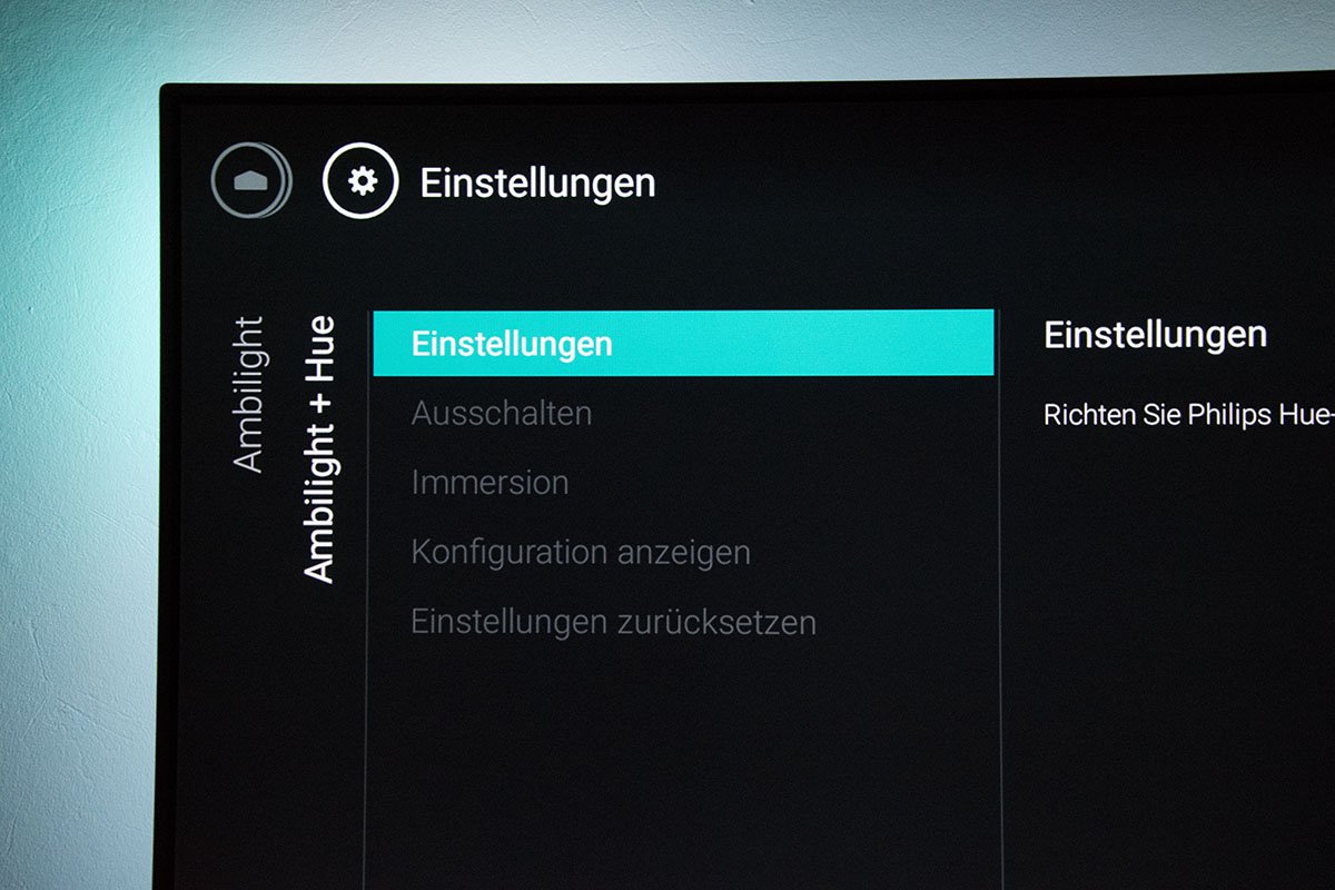 Geh mal unter „Alle Einstellungen“ -> „Ambilight“ und dann auf „Ambilight + Hue“ -> „Einstellungen“. Du musst es vorher erst unter den normalen Einstellungen aktivieren und dann kannst du im Hauptmenü drauf zugreifen.