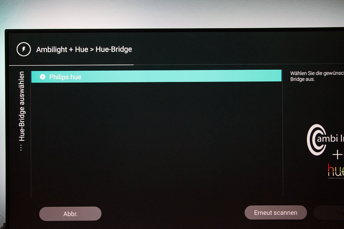 Hallo habe ein philips tv 55pus7805 mit ambilight die Bridge wird erkannt aber die hue Lampen werden nicht gefunden
