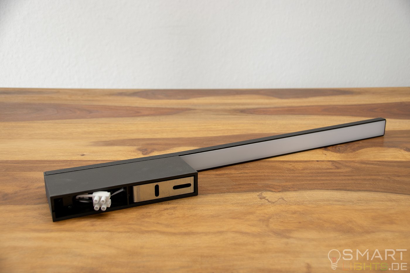 Für die Isolierung sorgt das Kunststoffgehäuse, welches aber nur im hinteren Teil verbaut wurde, denn der Lichtstreifen hat ein Aluminiumgehäuse. Daher fühlt sich die Lampe auch wertig an und kann problemlos abgesaugt bzw. gereinigt werden.