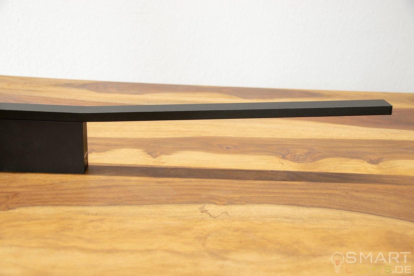 Die Philips Hue Liane füllt eigentlich eine kleine Lücke zwischen der normalen E27 Lampe und einer Stehlampe wie zum Beispiel die Signe. Bisher gibt es nur wenige Modelle, welche direkt an die Wand montiert werden können und für den Indoorbereich konzipiert sind. Natürlich könnt ihr auch aus dem Outdoor-Sortiment eine Lampe im Innenbereich anbringen, aber diese strahlen dann doch irgendwie immer eine gewisse Robustheit aus und fügen sich nicht gut im Innenbereich ein.[vc_single_image image=“14146″ img_size=“full“ add_caption=“yes“ alignment=“center“]Daher blicken wir nun mit vollem Stolz auf die Philips Hue Liane Leuchte, welche als weiße oder schwarze Variante zur Verfügung steht. Mit 463 Gramm kommt diese Leuchte auch relativ leicht rüber, was einen besonderen Vorteil mit sich bringt. Warum ich das so erwähne, werdet ihr etwas weiter unten noch erfahren.