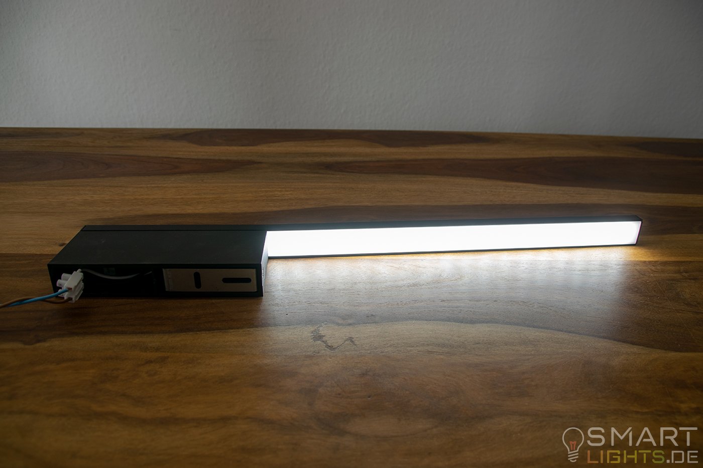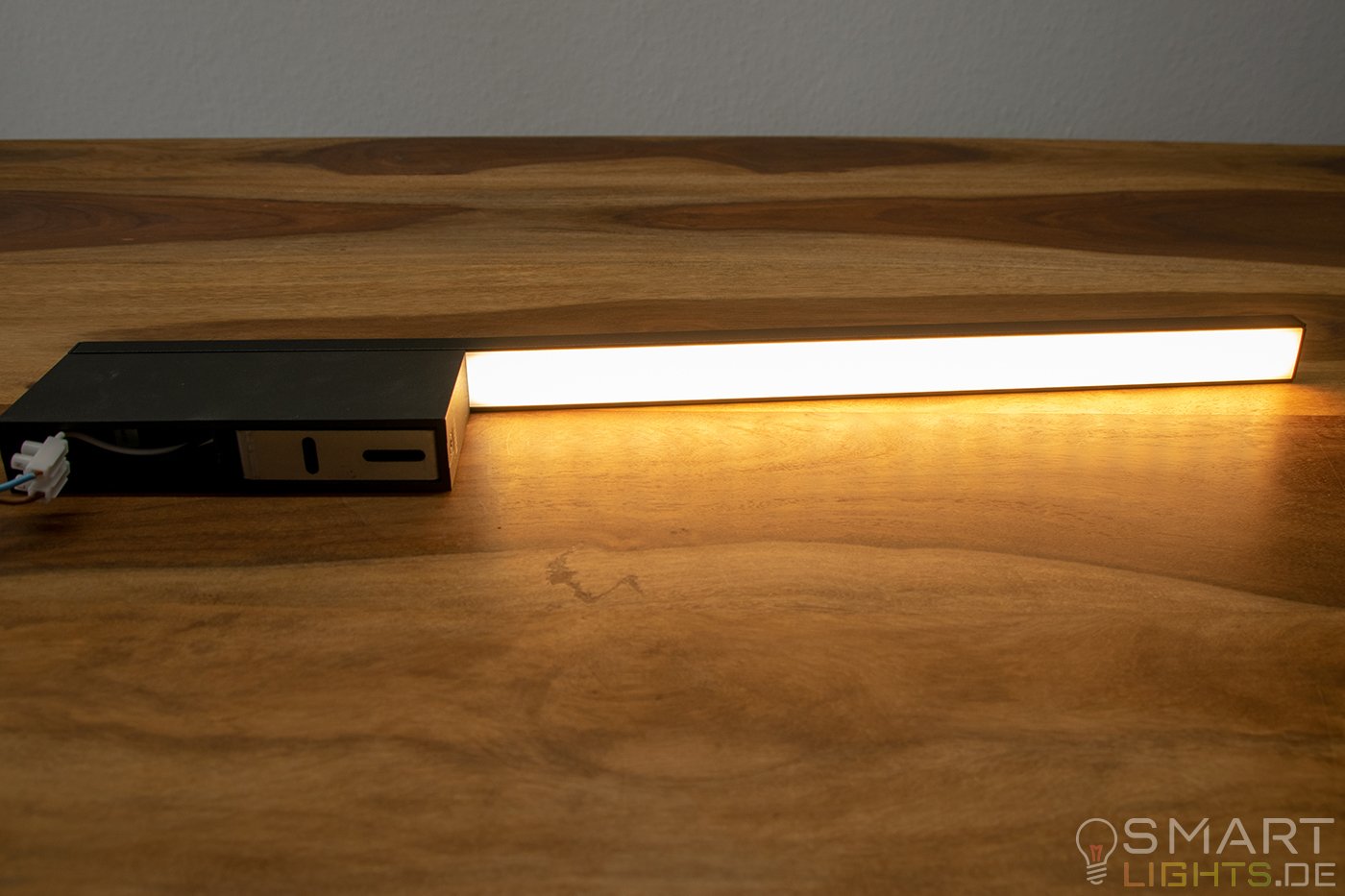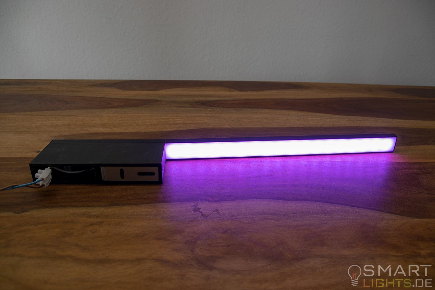 Das Licht ist weich und alle Farben werden wie gewohnt auch kräftig dargestellt. Dadurch das jedoch eine Art „Lightstrip“ verbaut ist und dieser einzelne LEDs nutzt, sollte die Lampe so angebracht werden, dass man diese nicht sieht.