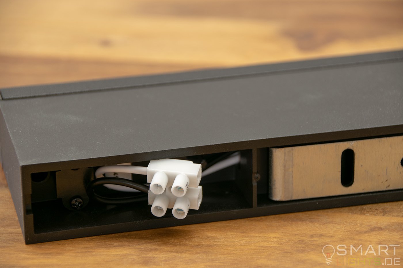 Für die Isolierung sorgt das Kunststoffgehäuse, welches aber nur im hinteren Teil verbaut wurde, denn der Lichtstreifen hat ein Aluminiumgehäuse. Daher fühlt sich die Lampe auch wertig an und kann problemlos abgesaugt bzw. gereinigt werden.