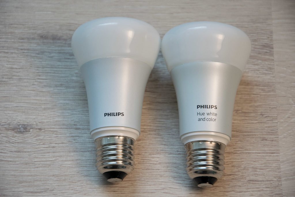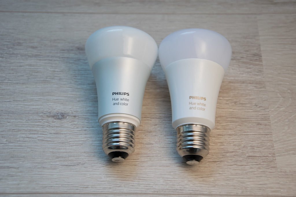 Erste Generation (2012): Erkennbar am silbernen Gehäuse des Leuchtmittels, Schriftzug in schwarz mit dem Wort „Philips“, schwache Farbwiedergabe bei Rot, Blau und Grün, runde Bridge ohne Apple Homekit, nur 600 Lumen Helligkeit, Modellnummer: LCT001