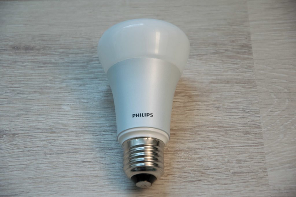 Angefangen hat alles mit der ersten Philips Hue Generation. Sie ist an der runden Bridge und dem silbernen Gehäuse vom Leuchtmittel erkennbar. Der aufgedruckte Schriftzug beinhaltet nur das Wort „Philips“ und ist klassisch in schwarz gehalten. Die Helligkeit des ersten E27 Leuchtmittels beträgt 600 Lumen.
