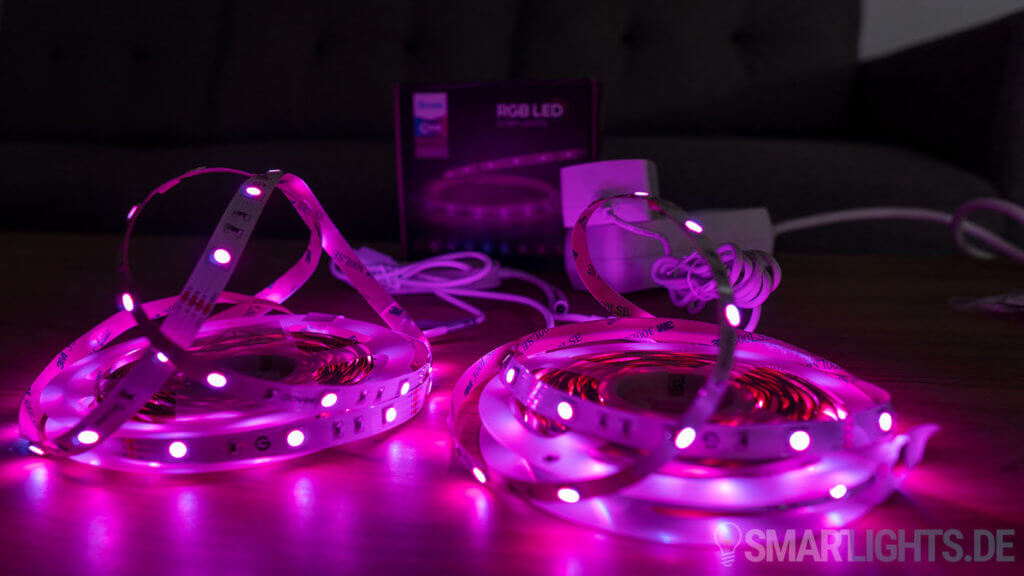 Die Farben sind satt und kräftig, aber es handelt sich nicht um einen RGBW, sondern um einen RGB Lightstrip. Demnach kann es vorkommen, dass zum Beispiel warmweißes oder orangenes Licht nicht so schön dargestellt wird. Die Helligkeit an sich ist ausreichend, Luft nach oben gibt es aber immer.