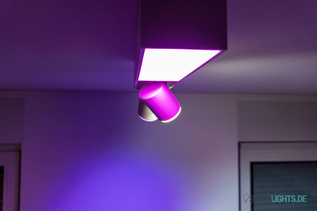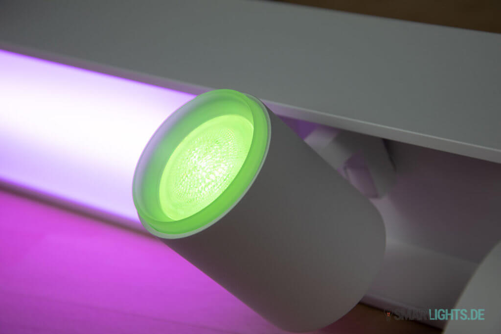 Einmal angebaut, ist die Ausleuchtung wirklich gut. Großer Vorteil, dank White Ambiance & Color Lampen, lassen sich neben sämtlichen Weißtönen, auch 16 Millionen verschiedene Farben einstellen. Interessant ist auch die Möglichkeit, alle Leuchtmittel und Balken einzeln ansteuern zu können.